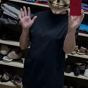 I feel cool and confident while wearing this mask. I love strolling through the park in a hooded robe with this mask on; it creates a special Halloween atmosphere, and people love taking photos of me in it.